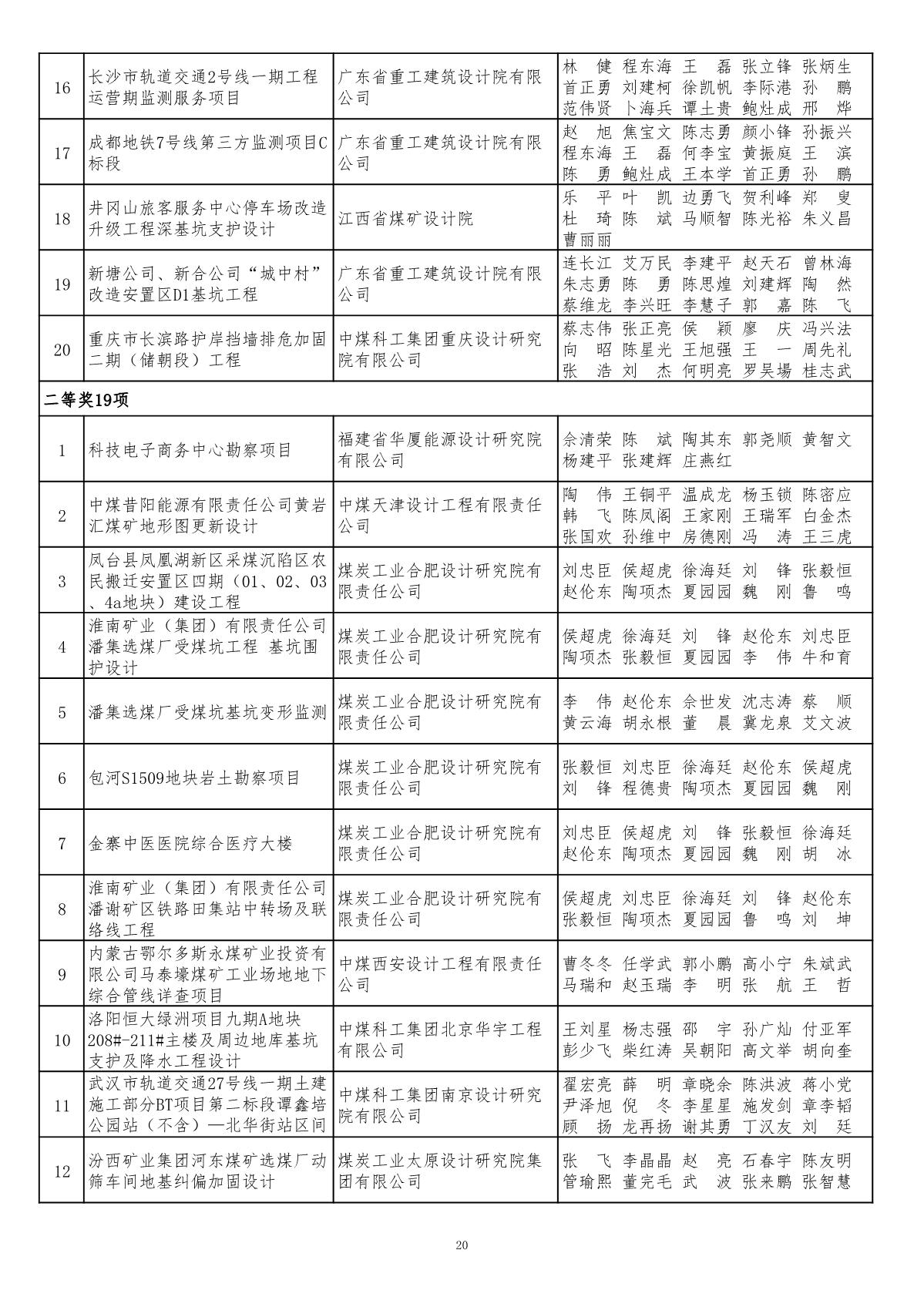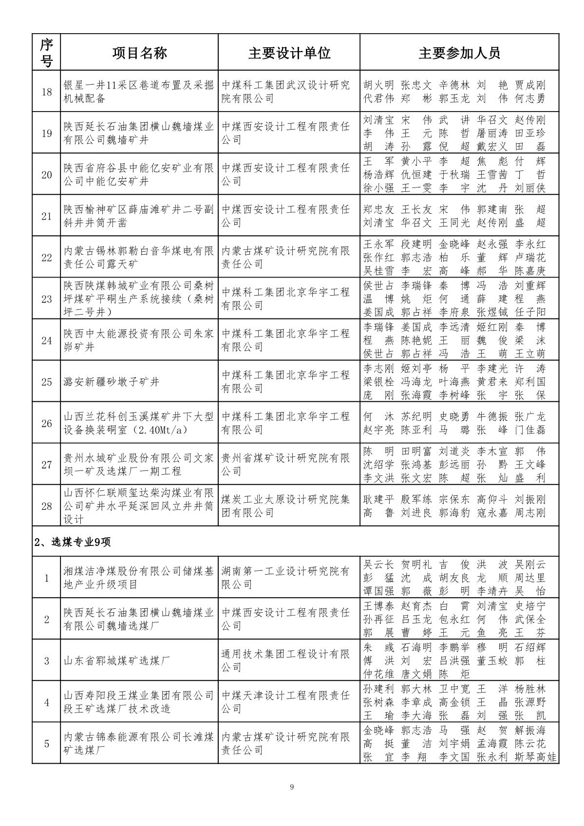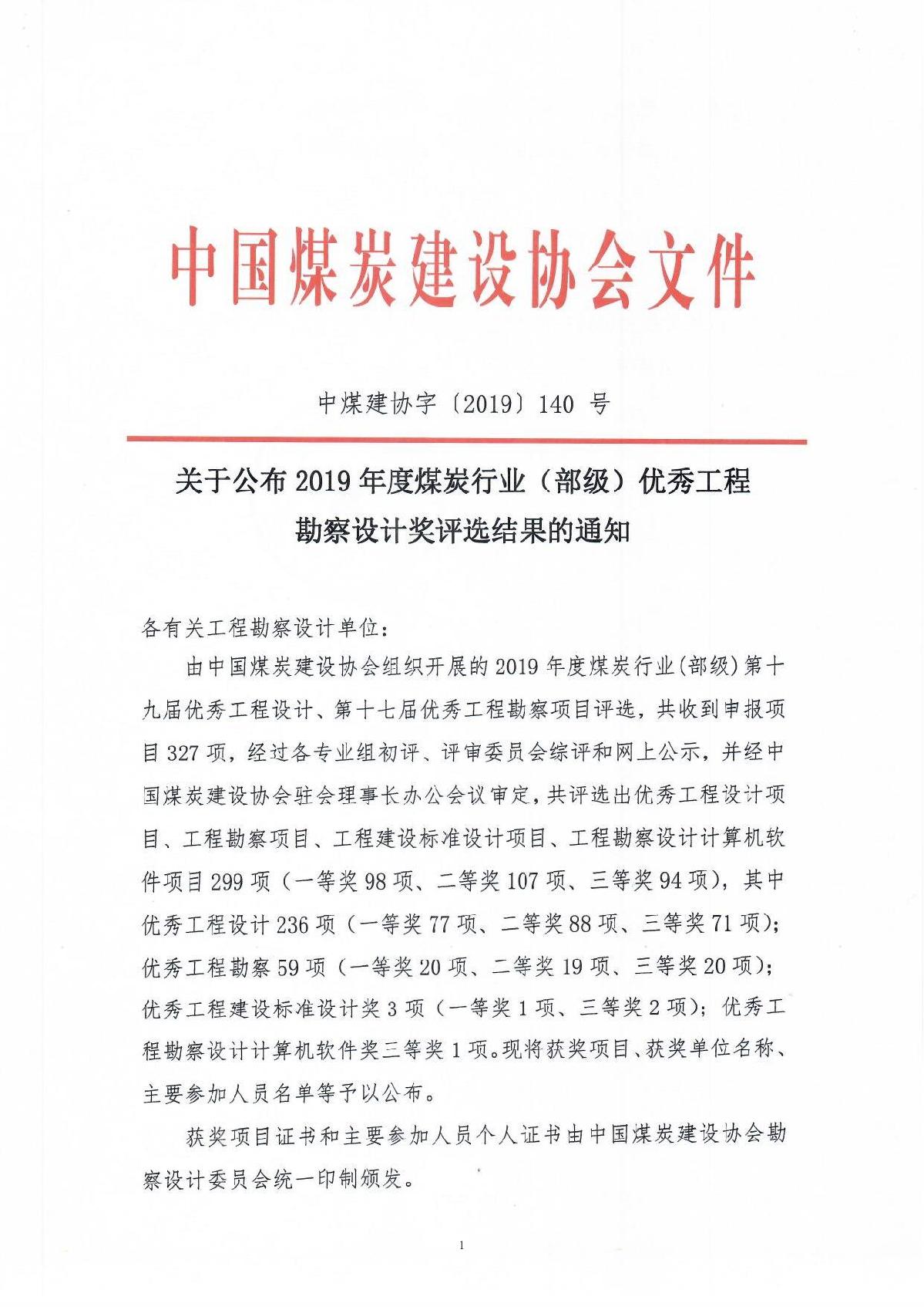 关于公布2019年度煤炭行业(部级)优秀工程勘察设计奖评选结果的通知