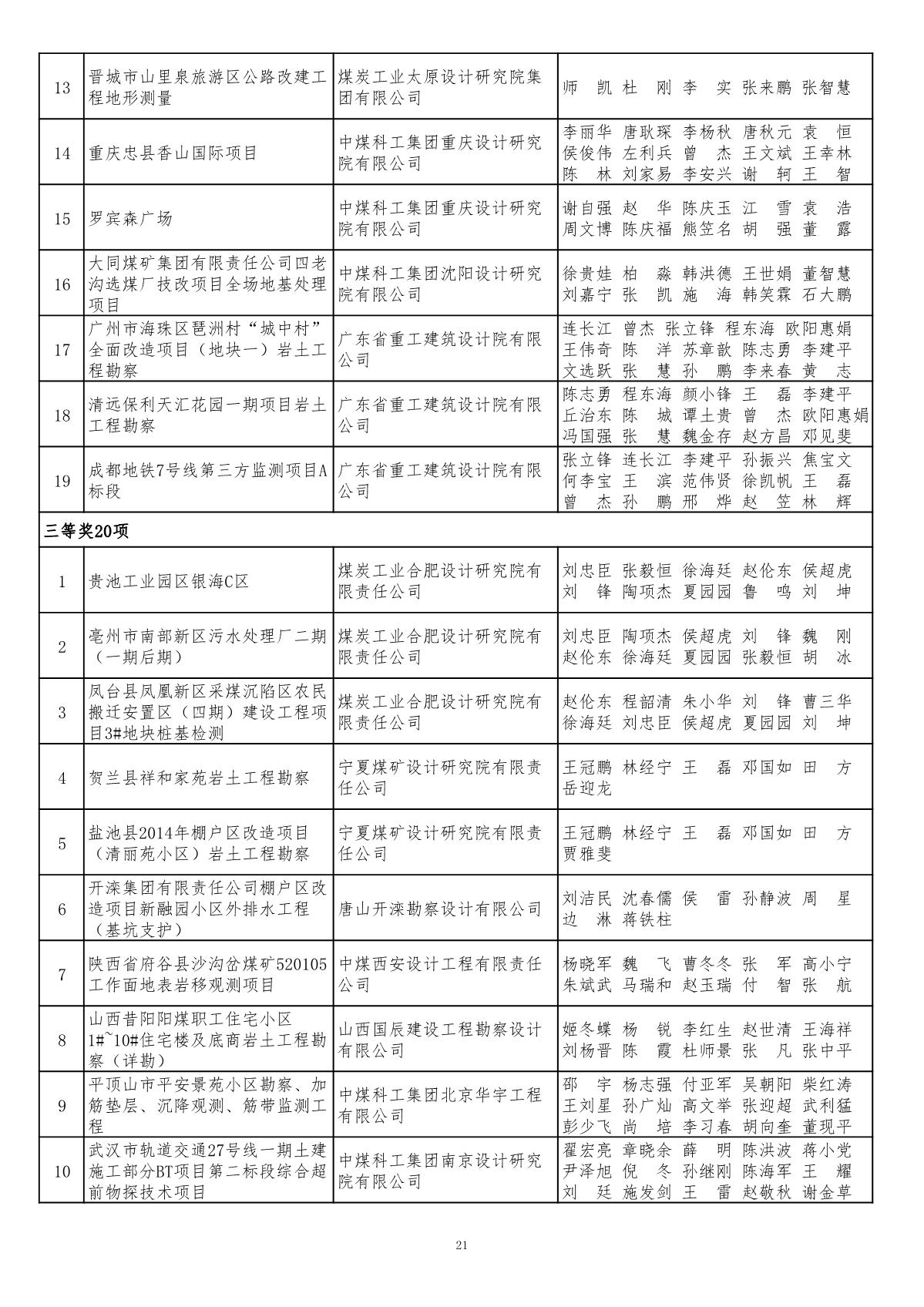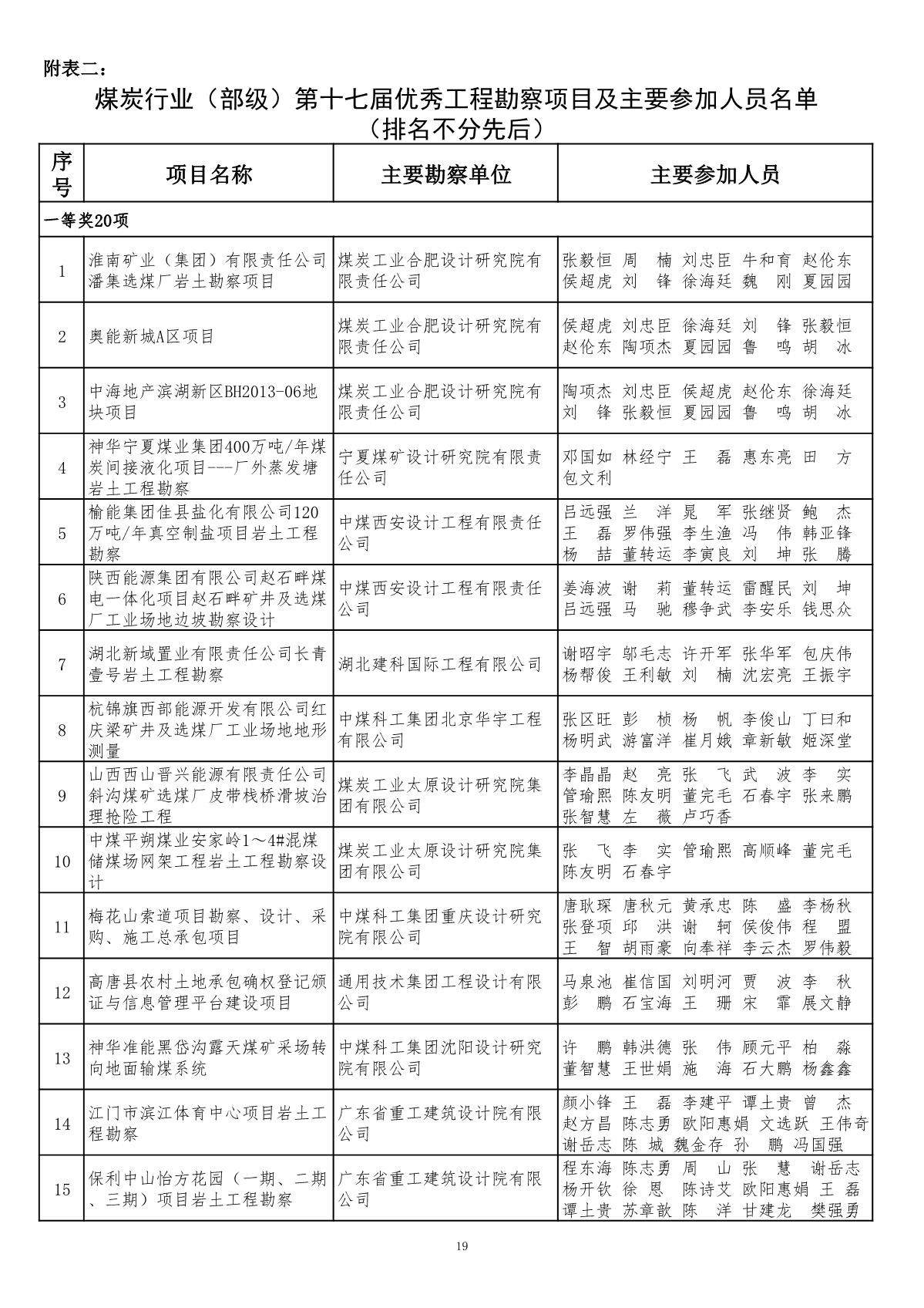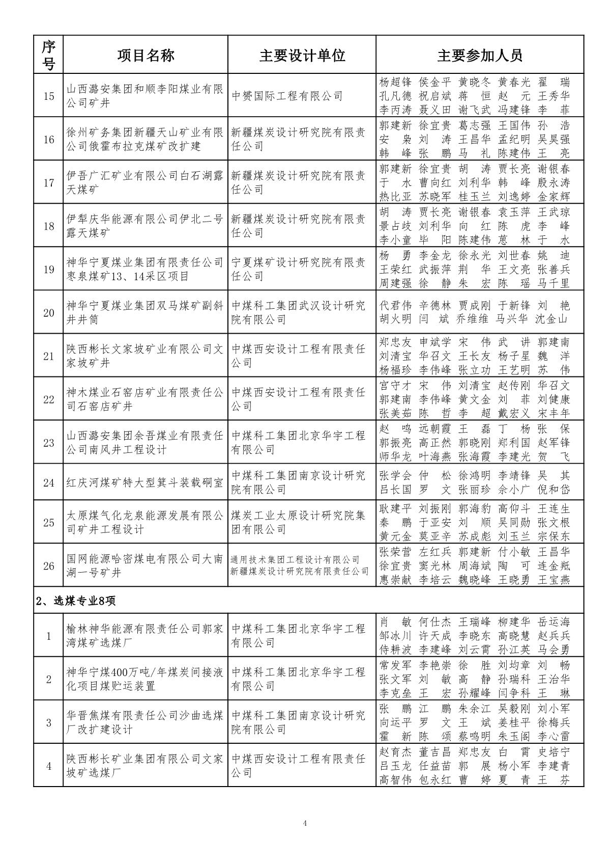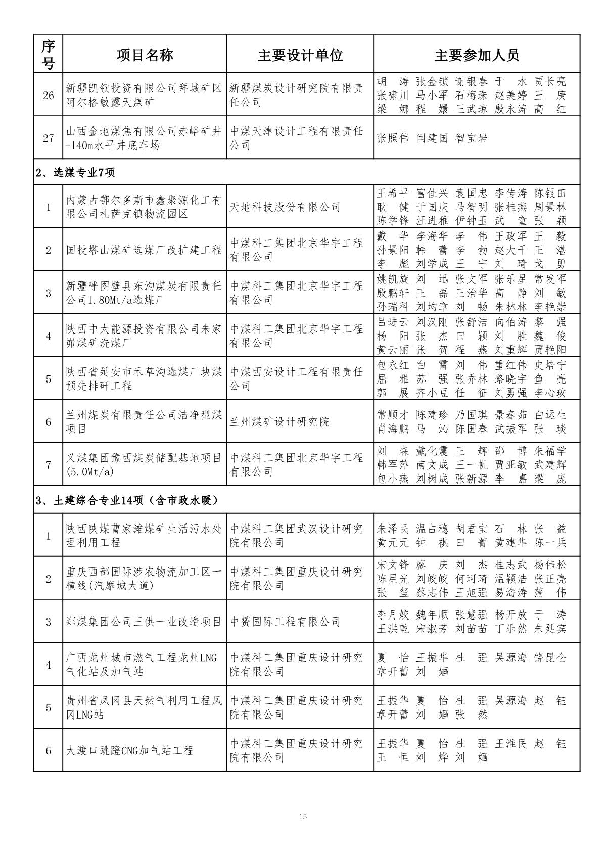 关于公布2019年度煤炭行业(部级)优秀工程勘察设计奖评选结果的通知
