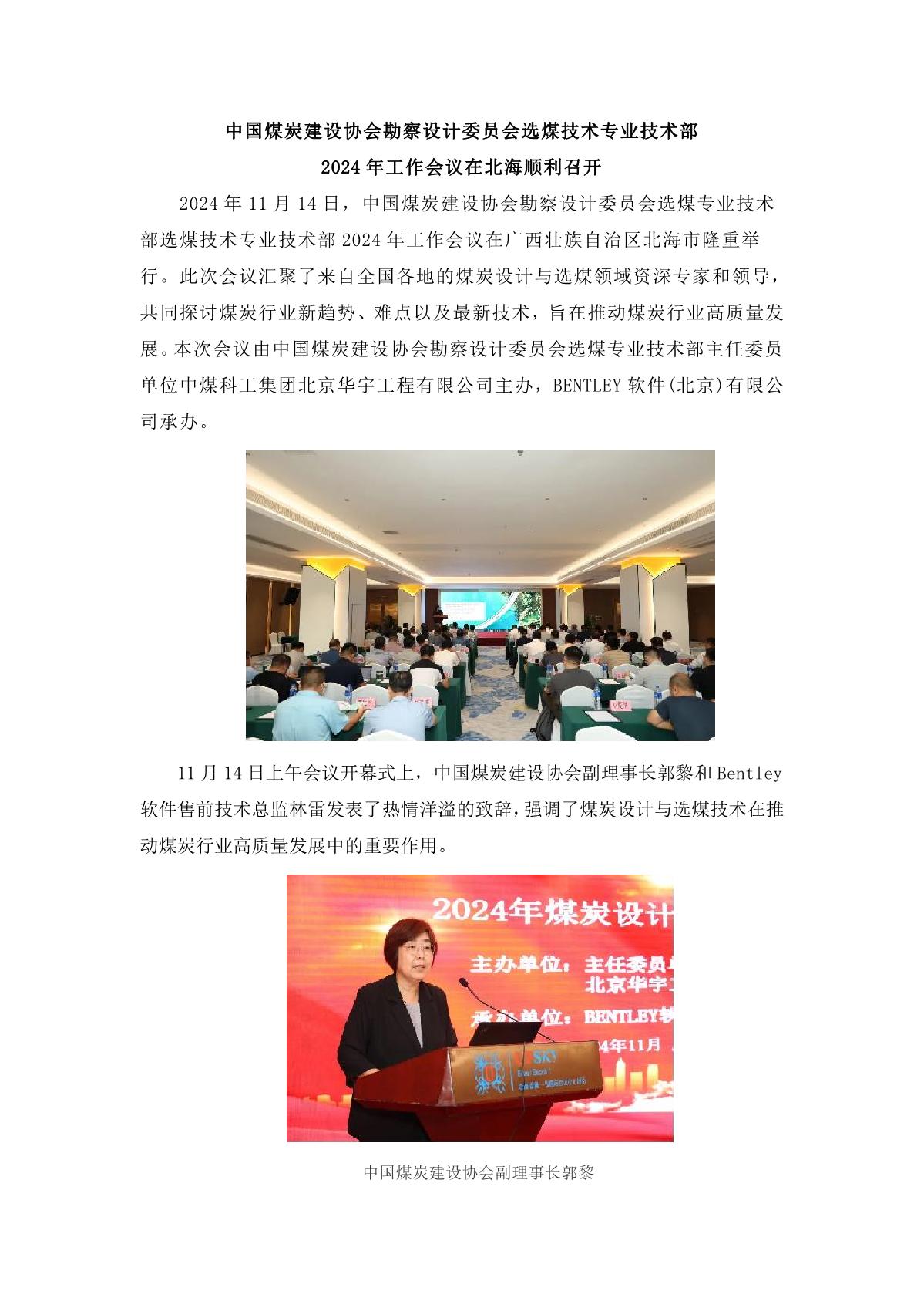 中国煤炭建设协会勘察设计委员会选煤技术专业技术部2024年工作会议在北海顺利召开