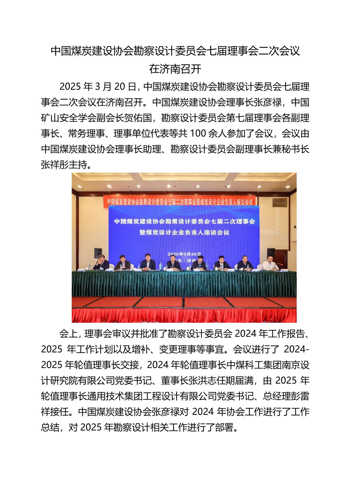 中国煤炭建设协会勘察设计委员会七届理事会二次会议在济南召开
